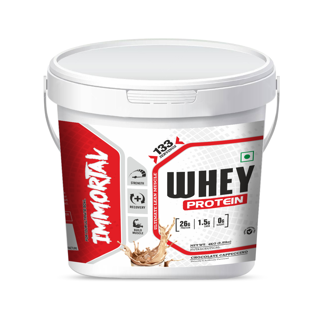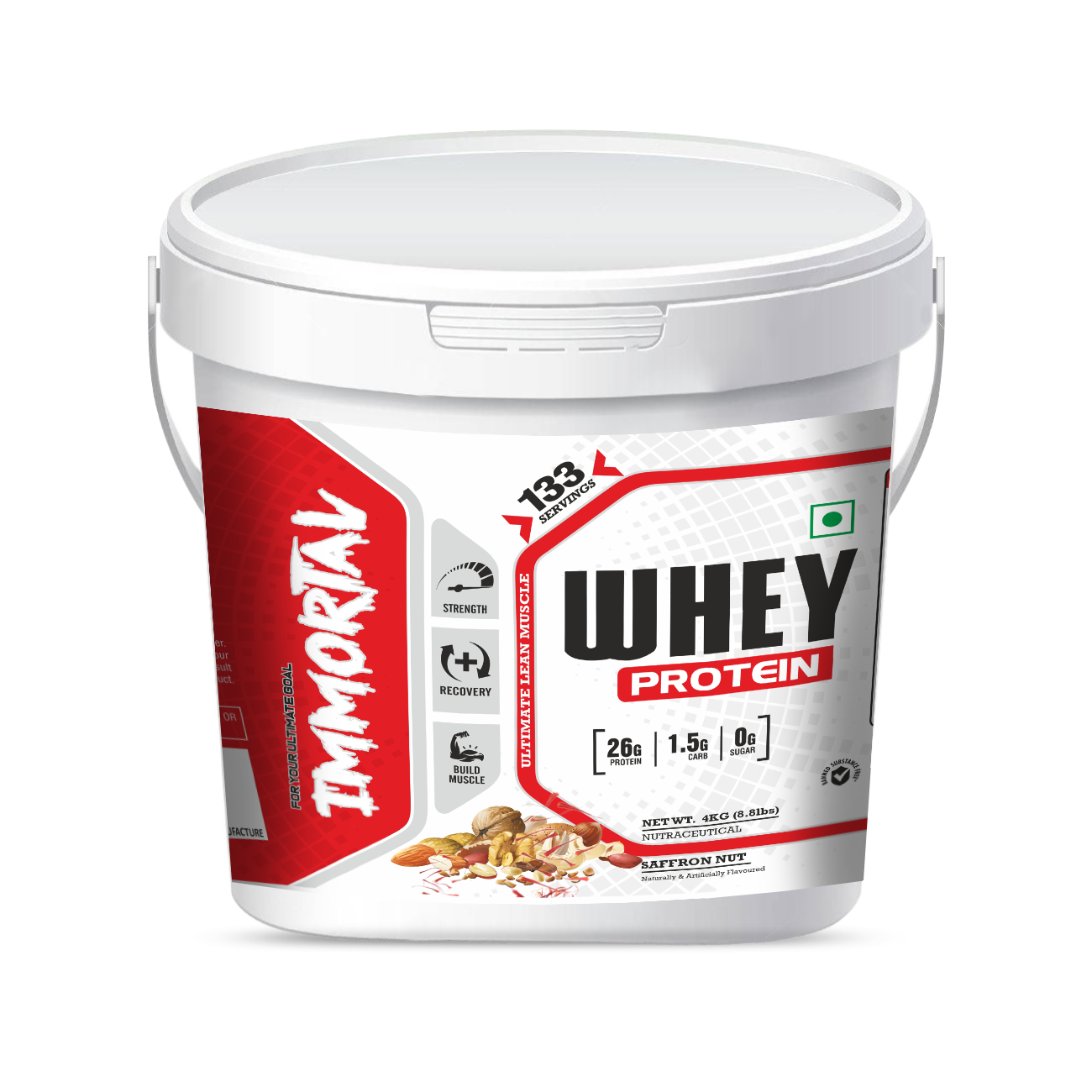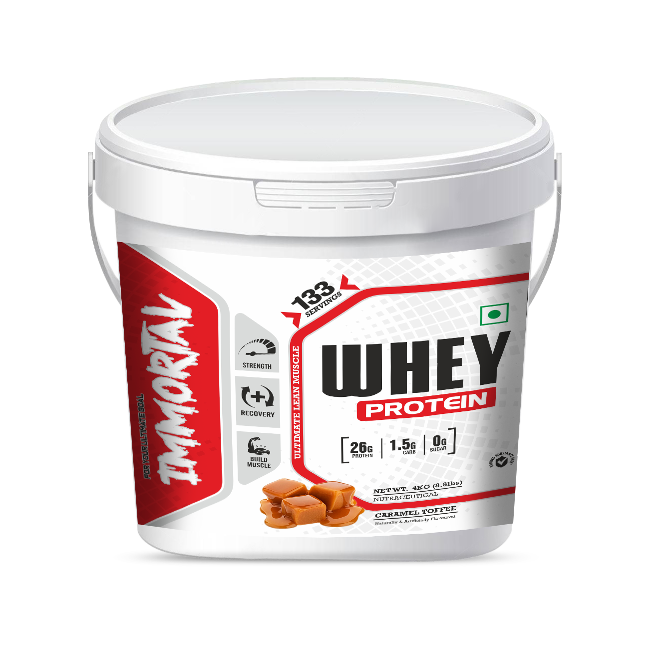Immortal Whey Protein 8.8lbs is a high-quality whey protein supplement that supports muscle growth, strength, and faster recovery. It delivers fast-absorbing protein to help build lean muscle mass and meet daily protein needs for gym beginners and athletes. Easy to mix and digest, it is ideal for post-workout and daily use. Available in three delicious flavours – Saffron Nut, Caramel Toffee, and Chocolate Cappuccino – for great taste with effective nutrition.